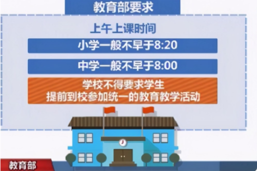 针对中小学生睡眠不足的问题,教育部发布了暖心通知,对中小学生早上到校的时间有所调整,小学上课时间不可以早于8点20,中学上课时间不可以早于8点。