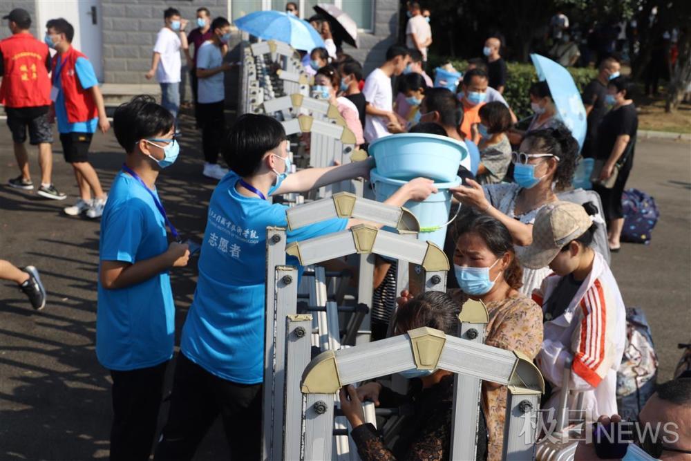 走进校门,就是新生报到处,各学院有报到点,让许多学生感到暖心的是,学校在迎新现场放置了大量的冰块降温。学工处处长曹冬红告诉记者:“因为天气炎热,学校每天都放置了100块以上的大型冰块。同时由于家长不能入校,也给校外等候的家长准备了饮用水。”