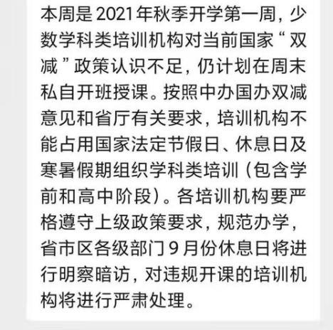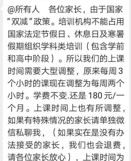 仔细解读政策后发现,教育部严查周末开课,而周中补课不在监管范围内,于是各个补习机构开始发布调课通知,将周末课程安排在周中。