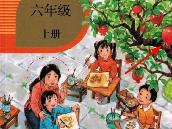 没想到六年级的语文书封面就变成了一个没有精心打扮的妈妈在带着三个孩子在玩耍,爸爸可能去赚钱养家了。具体应该是妈妈带着学生在画树上的石榴树。石榴树是多子多福的意思,有网友猜测难道是和推出的三胎政策有关吗?