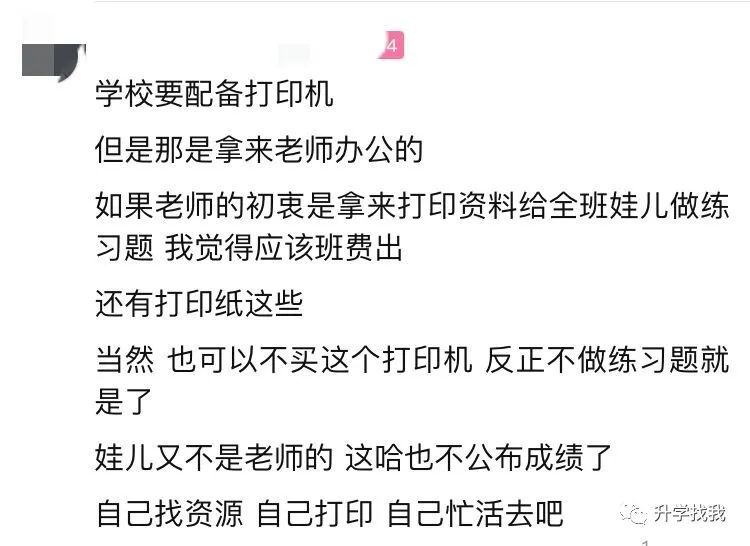 班上添置打印机,是为了学生的学习。如果仅靠学校的几台打印机,每个年级班级又多,光是排队都要一段时间,到时候只有家长自己去打印。