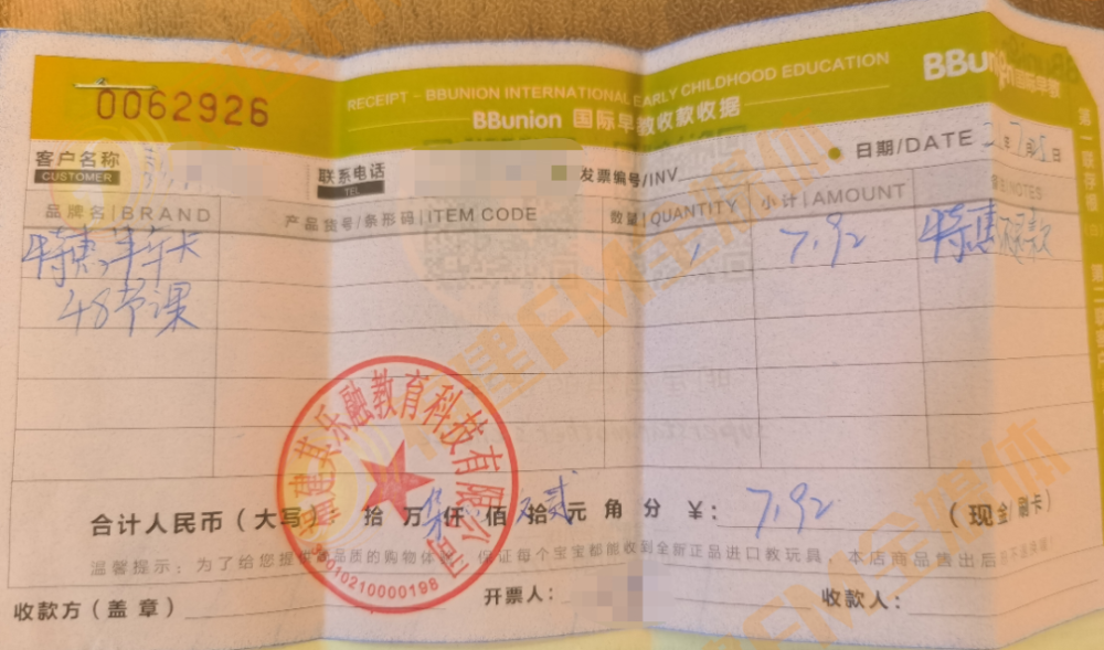 今年7月25日,彭女士在大众点评平台看到一家名为“BBunion国际早教”机构发布的课程信息,就抱着试一试的心态,购买了一节体验课。彭女士随后到位于鼓楼区恒力?博纳广场这家早教中心体验。机构整体的教学氛围和老师的指导水平说服了彭女士,于是她购买了48节课,总计7192元。