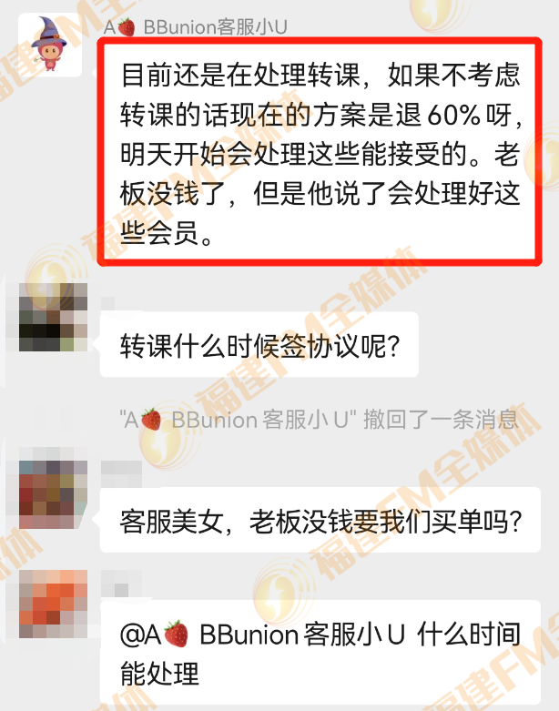 9月22日,客服在群里发布了退款方案。据“转课群”微信截图,客服称,退款方案是退还课程费用的60%。显然,对于仅上几节课的家长来说,这个比例他们根本无法接受。此外,针对早教中心的接连操作,彭女士也产生了质疑。