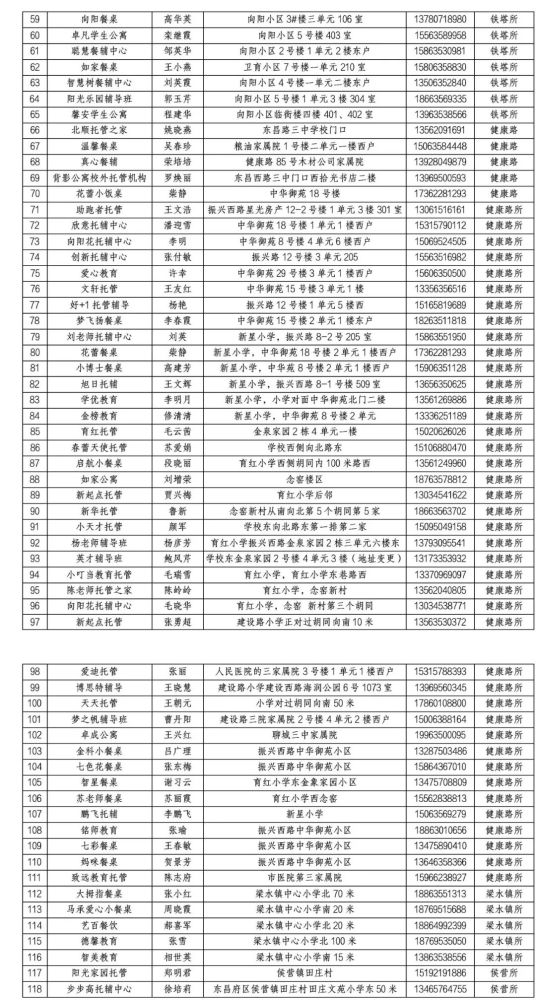 为进一步规范校外托管机构餐饮服务经营行为,东昌府区市场监督管理局对全区校外托管机构进行了全面的摸底调查,按照提升一批、规范一批、取缔一批的工作原则,进行了整治提升。经过材料审查、现场核查,对符合条件的校外托管机构进行备案登记。截至目前,东昌府区共有345家校外托管机构登记备案,现予以公示。