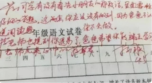 就拿这位家长来说,他在试卷上写下了学生改卷子时的态度,还分析总结错题原因,最后还写了一段对学生鼓励的话,这些都能表明他确实认真看了孩子的试卷。
