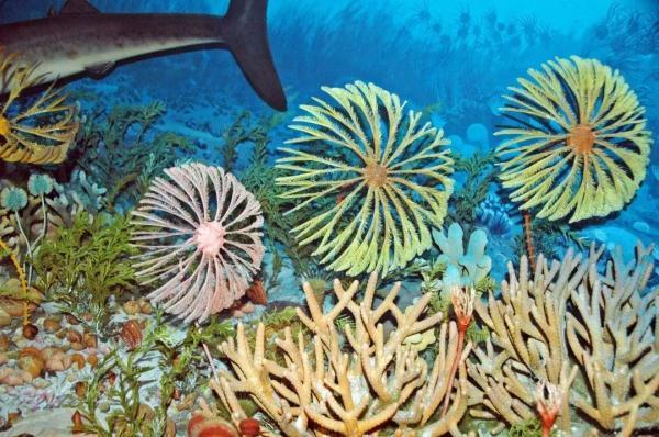 泥盆纪海底环境复原模型中的海百合 | James St. John