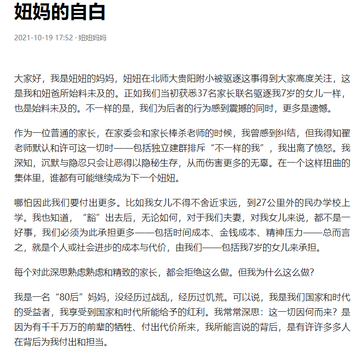 关于贵阳市北京师范大学贵阳附属小学37 名家长联名要求7 岁女孩转学的事情,近些天闹得是沸沸扬扬。