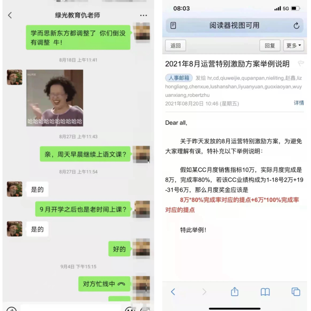 直至9月2日绿光教育停业公告的前一天,仍有工作人员利用自己是教育局白名单企业鼓动家长续报课程。星空体育中很大一部分家长在6-8月(双减政策出台后)在绿光工作人员的指导下进行了大额续费,但并未享受到对应课程服务。同时为规避国家“双减政策”,绿光教育销售人员表示可以实现“周中上新课,周末托管”的形式开展课程,所购买的课程服务不会受到影响;期间家长通过面谈、电话、微信等方式询问校区校长与销售人员,相关人员对于课程服务始终表示虽然绿光教育会调整上课时间,但课程会继续,换而言之继续上课没有问题。