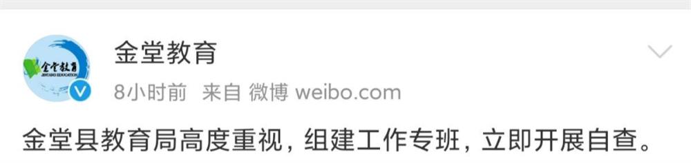 16日凌晨,金堂县教育局就此事发布微博称:金堂县教育局高度重视,组建工作专班,立即开展自查。16日上午,金龙镇小学工作人员告诉极目新闻记者,对于网传视频反映的内容,他们已经成立了专班调查小组,待处理结果出来以后,将向社会公布。