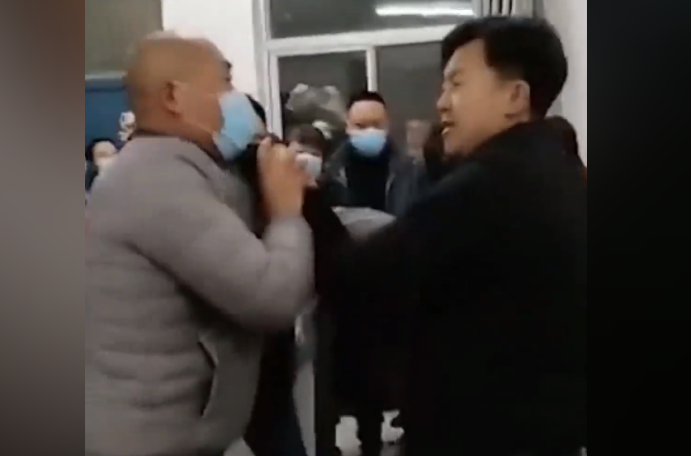 在一处教育机构内,窗明几净,这明明是一处学习的场所,如今却面目全非。教室内,几名家长被一群机构工作人员团团围住,拳脚相加,一名年纪已经不小的男性家长虽奋力反抗,但无奈对方人多,他被教育机构的人死死卡住脖子,猛扇耳光,一名孕妇家长更是被教育机构的人团团围住踢打,场面十分混乱。