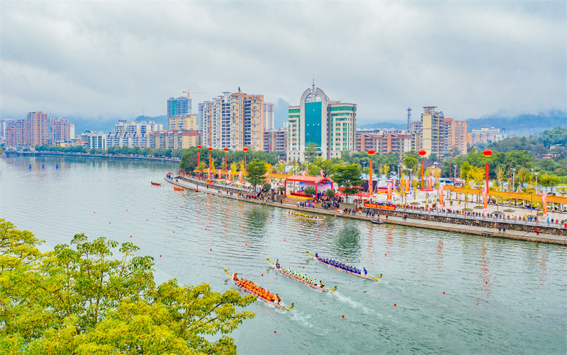 11月3日,广东韶关市乳源瑶族自治县举办了以“民族团结感党恩 同心共筑中国梦”为主题的龙舟赛事活动,共9支队伍参加。
