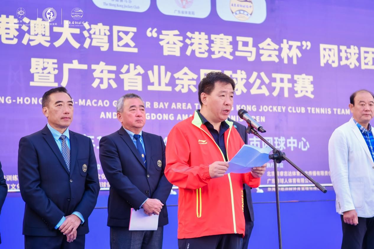 广东省网球协会副主席贺东波代表广东省网球协会和大赛组委会,向前来出席和参加比赛的各位来宾、运动员表示热烈欢迎!广东网球有广泛的群众基础和良好的网球氛围,在今年全国第十四届全运会上,广东群众网球夺得3金2银1铜的好成绩。广东省网球协会将继续把赛事办成粤港澳大湾区乃至全国具有影响力的品牌体育赛事,发挥网球在建设粤港澳大湾区中的凝聚力、感召力、参与协调力的作用,促进体育交流与合作,助力2025年粤港澳全运会的举办,推动粤港澳大湾区体育事业的发展。