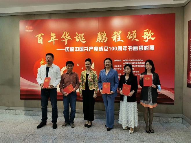11月14日下午,深圳市致公党福田区总支“庆祝中国共产党成立100周年书画摄影展”于深圳市文化馆正式开幕。