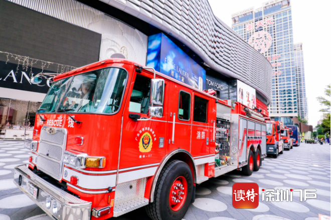 卓悦中心广场南入口处是消防车展示区,5辆大型消防车排列整齐,吸引许多行人驻足。在一旁的消防机器人展示区,小型消防机器人在消防员操控下抽出一支水枪向花坛喷射水源,模拟救火场景。在卓悦中心广场,消防器材被搬到了消防日主题嘉年华现场:在灭火器发展历程展示区,展示出了各式各样的灭火器;在绳结互动体验区,消防员传授救援中的各式绳结打结方法;在儿童绘画展示区,小朋友们创作的一幅幅漫画向消防英雄致敬;在卓悦中心商场内,福田各消防站、小型站的分布图向市民展示福田消防救援力量……