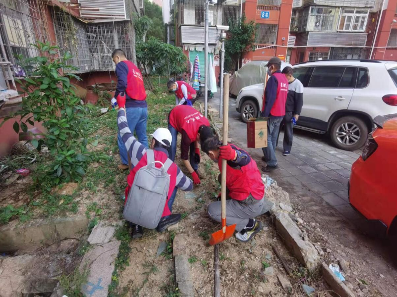 活动中,大家分工明确、密切协作,充分发挥不怕苦、不怕累、不怕脏的精神,拿着扫把、垃圾袋等清洁工具,对建设集团大院花坛垃圾、废弃物品以及杂草进行清理,还对对花草进行了修剪,用实际行动改善小区的卫生环境。