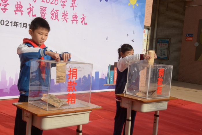 一分耕耘,一分收获。捐款活动后,是最激动人心的颁奖活动。首先由教导处颁发“学校年级学习标兵”,然后是德育处颁发“乐乐少年”,同学们手捧奖状和奖品,抑制不住内心的喜悦,那张张笑脸似朵朵鲜花般在阳光的照耀下显得格外艳丽。随后,由各班班主任继续进行假期安全教育,并对本学期各方面取得优异成绩的学生进行颁奖,鼓励他们再接再厉,争取更好的成绩。