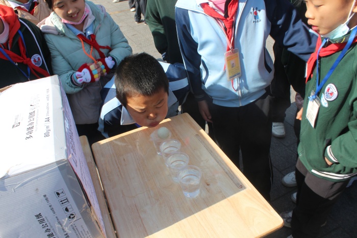 课堂展示后的游园活动让整个校园变成了一个游乐场。26个班级,26个游戏摊位,沿着跑道围成一个大大的圆圈。每个班级都精心准备了一个与众不同,趣味盎然的游戏,有“蛤蟆功”、“珠行万里”、“垫球接力”等。家长们也协助老师开展游戏,虽然气温较低,但同学和家长们的额头上的汗珠充分体现了大家的热情和欢乐。这些精彩的游戏极具人气,丰厚的奖品吸引了很多同学。在操场的正中央,学校少工委也组织少先队干部为同学们奉献上了动感舞蹈,吸引得同学和家长们驻足观看,掌声不绝于耳。同学们玩得开心,家长们忙得开心。老师们、家长们、孩子们脸上都洋溢着喜悦的笑容,华盛学校的操场上此时融汇了最精彩的瞬间和欢乐。