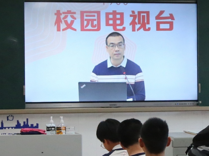 升旗礼后,吴耀光校长出现在各班教室大屏幕上。他首先向全体师生表达了新年的问候与祝愿。联系国内国际时事形势,吴校长指出,过去一年中,中国迎接各种挑战,突显国家强大的实力与韧性,显示共产党领导的伟大力量。而今年是中国共产党建党100周年,“热爱祖国”、“热爱中国共产党”是大家要牢记的信念。联系学校情况,吴校长指出,新学期学校将全面开展“智慧课堂”,面对学校及家长们的大力支持,同学们要用认真学习来回报学校与家庭的付出。吴校长还指出初三、初二年级要重视今年中考的备考工作,而面对学习生活上的困难与挫折,同学们要学会“微笑面对、乐观面对”。