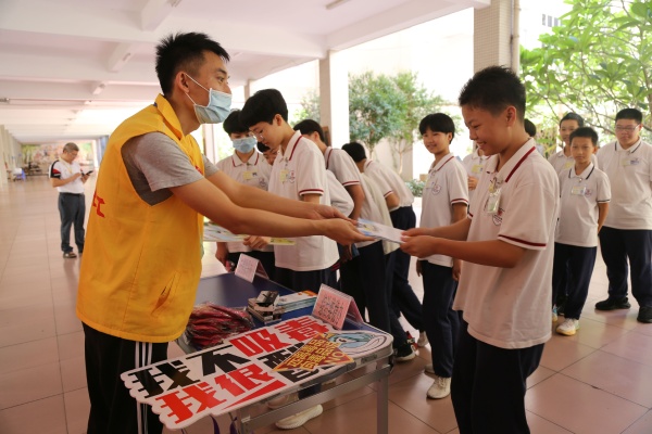 为进一步加强东升中学学生对毒品危害的认识,增强自我保护意识,为在校学生营造良好的成长环境,普及毒品预防知识,进一步提高同学们抵御毒品的能力和禁毒斗争的意识,加强以青少年为重点的全民禁毒宣传教育,6月17日上午,东升中学承办了东升镇“无毒校园”禁毒知识宣传巡回展览活动。本次主题活动为东升镇法治宣传进校园系列活动之一,由东升镇综治维稳办、禁毒办和扫黑除恶办联合文体教育局开展。东升中学全体师生利用课间和放学时间参加了上述活动。