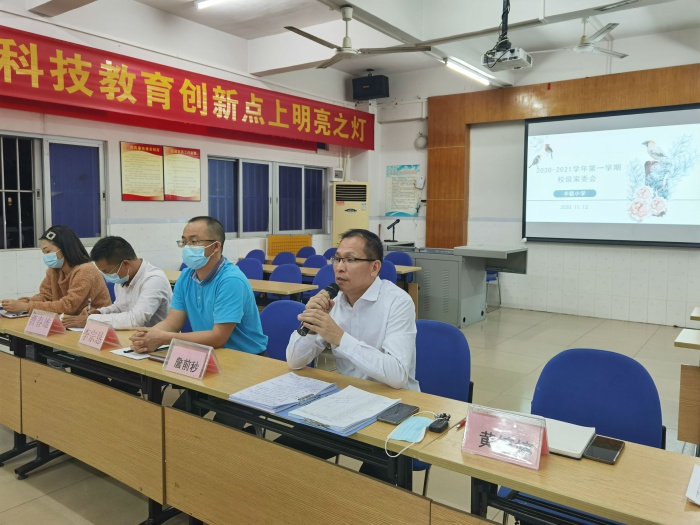 会议伊始,丰联小学的各位行政进行自我介绍,让家长委员了解学校行政班子的构成以及各自分工。在德育处黄婷婷主任宣布了2020-2021学年家委会成员名单后,詹前秒校长为新一届家委会成员颁发聘书。其后,黄主任介绍了“1357家校合作”工作机制,展示了在这工作机制下学校家校工作尤其是家长义工服务方面取得的成果,并且明确了家长委员会的组织概念、家委职责、权利及义务。 最后,詹校长向与会人员解读中共中央、国务院发布的《关于全面加强新时代大中小学劳动教育的意见》,明确指出不同年龄阶段的不同要求,让家委们明白劳动教育的意义,希望借助家长义工服务队的力量将孩子们的劳动教育落到实处。