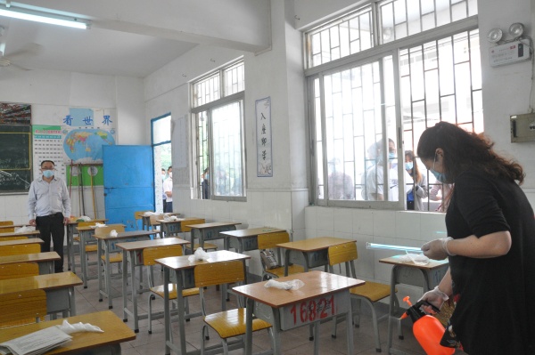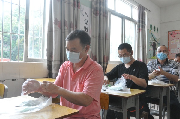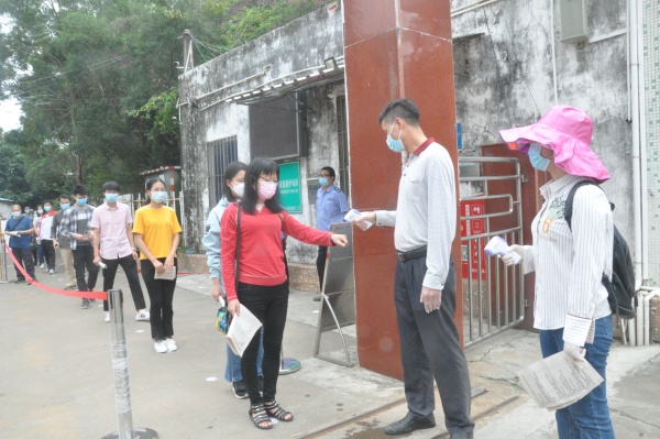 这次演练以郑新为组长、副组长梁荣忠、 健康副校长杨洁炜,整个演练设立疫情演练评估,疫情监测,现场消毒,信息排查,疫情隔离以及宣疫情传维稳等环节。演练全体老师扮学生排队等候进入校园,戴口罩,手持健康卡,并保持一米间距分两条通道有序进入校园。学生进入学校时要依次走过测温区,检测人员在二边用测温仪对学生逐个进行体温检测,并对学生自行车、书包等物品进行消毒。体温正常、无其他症状者,有序进入班级上课。对于体温异常的学生由专人带至隔离区, 送至复测区,由校医再次用水银温度计对学生体温进行检测。同时将此生经过的通道消毒并封闭。学生进入课室前再次由班主任进行体温测试,并做好登记。对于学生在课堂中出现身体发热突发事件,学校工作小组也是做了周密的应对部署。