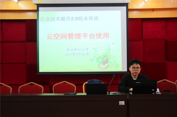 2021年3月22日,阜沙中心小学举行信息技术提升工程2.0校本培训活动,邀请中国移动项目培训讲师进行《云空间管理平台使用》讲座,全体教师参加了培训活动。