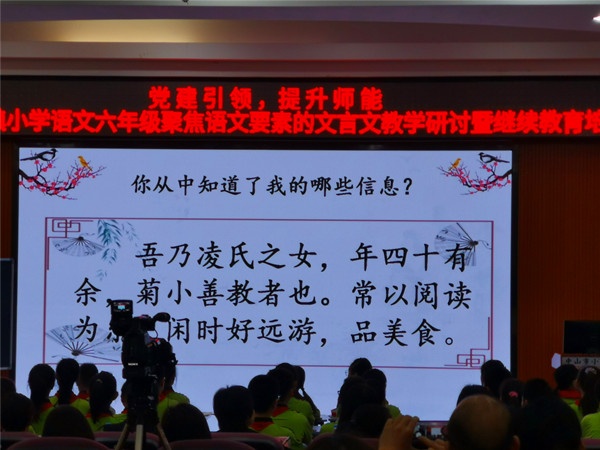 六年级组参加小榄镇升平小学的文言文阅读教研课例观摩活动。首先是菊小的凌晓芳老师执教《学弈》,第二节是丰华小学的谷米亚老师执教《两小儿辩日》。两位老师教学流程顺畅,各环节衔接自然,授课仪态大方,情感投入,语言感染力强,师生互动融洽,教学过程中注重“读”的训练,不断创设情境朗读、表演,让学生的主体地位得到体现。在处理教材时由浅入深,层层推进,找准教学的切入点,做到读中认识,读中理解、读中感悟。课后,梁雪菊老师工作室的成员老师,结合两节课例,进行了精彩的点评。给听课的老师们指明了文言文阅读教学的方向,提供了宝贵的借鉴经验,受益匪浅。