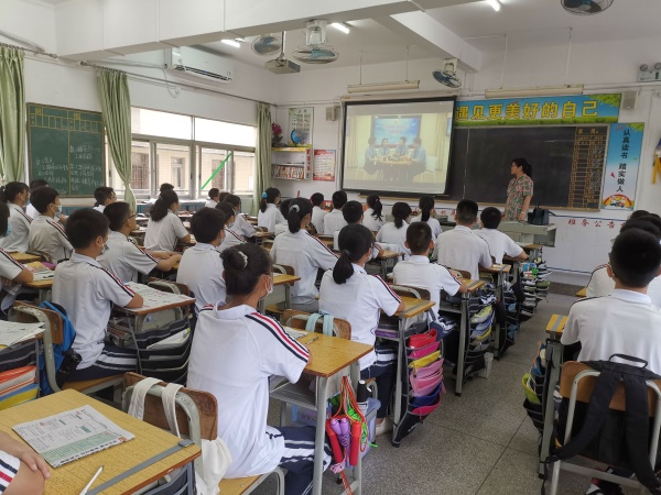 当天下午4点10分,班主任带领各班同学就座课室观看线上网络直播,直播开始,全体检察人员齐唱“我和我的祖国”吸引了同学们的眼球,同学们线上走进了检查机关,观看了院史馆、12309检察服务中心、未成年人刑事检察办案区(多功能心理咨询室、询问室、谈话室等)。接着参与了线上线下的互动环节。检察官与中学师生线上交流,然后未成年人检察官以“防性侵”和“校园欺凌”为主题,传播法律知识,走进学生们的内心,守护学生们健康成长。
