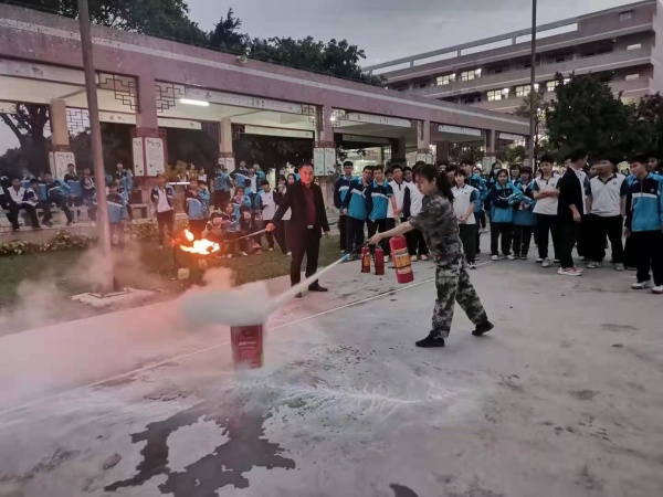 随后,恒安物业管理有限公司李经理给全校住宿生讲解了消防逃生的注意的问题,并示范使用灭火器的方法,教会学生正确使用灭火器。并让学生亲手灭火,在操作中掌握灭火技巧。