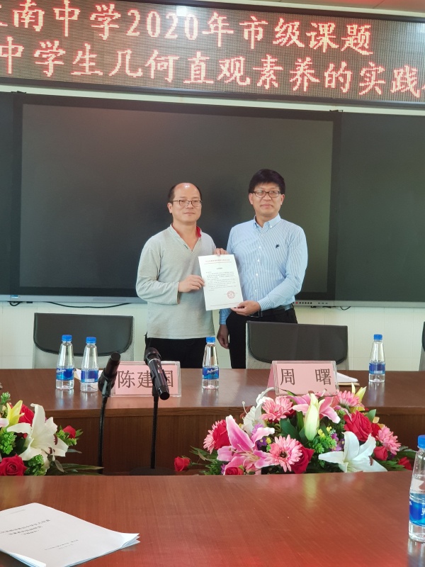 2021年3月9日下午,港口镇大南中学市级课题《利用几何画板培养初中学生几何直观素养的实践研究》开题报告会顺利举行。中山市教育教学研究室副主任周曙、中山市教育教学研究室职教教研员陈建国、港口镇教育和体育事务中心专干苏少伟莅临指导,课题管理人华师中山附中杨希副校长、学校行政和课题组全体成员参加会议。