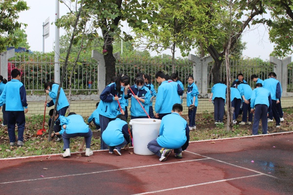 下午,初一初二年级全体学生集中足球场,德育处主任谢元新发出号召:希望各位师生都能从身边的小事做起,深入学习雷锋精神,努力成为雷锋精神的传承者,利用本次爱国卫生志愿活动,清除校园卫生死角,净化环境,扮靓校园。