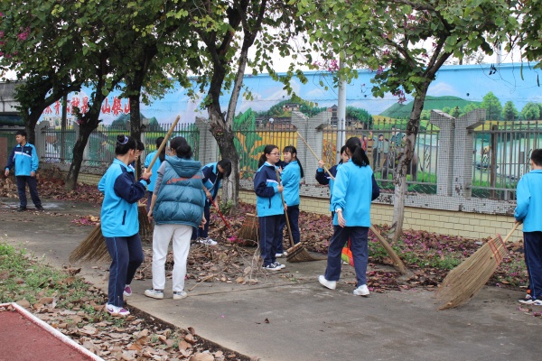 各班级分工合作,积极配合,团结一致,有条不紊地对校园内的区域进行了一次彻底地清理。老师们身先士卒,做好表率,同学们拿起扫把、铲子认真打扫落叶、垃圾等,在师生们的共同努力下,卫生死角变得干净整洁了。一次次的清扫,一滴滴落下的汗水,是同学们践行雷锋精神的最好见证。