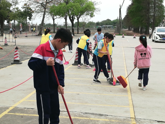 身穿黄色小马甲志愿者服的学生们在辅导员的带领下拿上扫把、垃圾铲和垃圾桶等清洁工具,除草,清扫垃圾,不放过每一个死角,把街道清理得干干净净。同学们发扬不怕苦、不怕脏的志愿者精神,以饱满的热情和十足的干劲,使街道环境重新焕发光彩,小小马甲在马路上形成了一道靓丽的风景线。