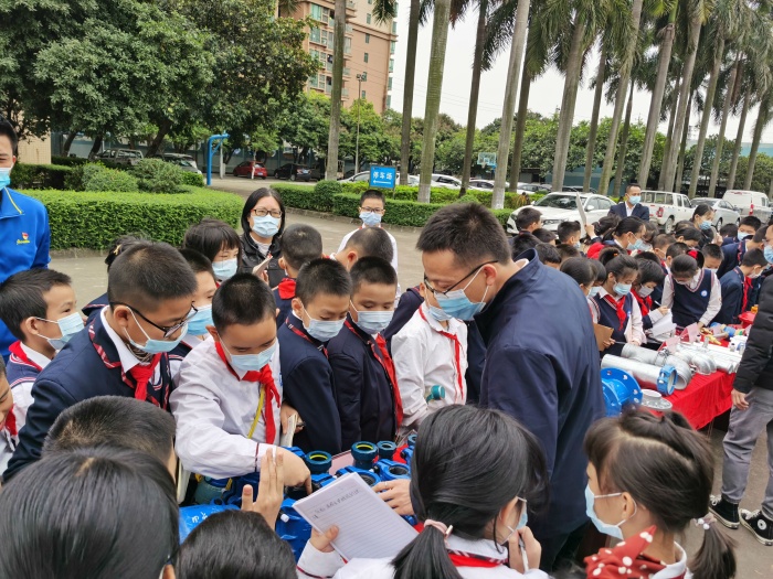 下午两点半,四年级学生已经排着整齐的队伍出发古镇供水厂。一来到水厂,各位工作人员对同学们的到来表示热烈欢迎。他们先对古镇供水厂作了简单介绍;接着,同学们在工作人员的带领下参观了供水厂的沉淀池、过滤池、清水池等不同地方;同时,水厂工作人员也详细地为同学们讲解了原水是怎样经过混合、反应絮凝、沉淀、过滤、消毒等环节,才变成星空体育家家户户所用的干净、健康的自来水。同学们都听得非常认真,还不时礼貌地请教工作人员各种关于自来水净化工艺流程的问题,并做好笔记。同学们还认真地观看了工作人员进行余氧检测的操作,了解了如何通过微生物实验以及滴定实验来测定水的洁净程度,深切体验了自来水生产过程的科学性与严谨性。