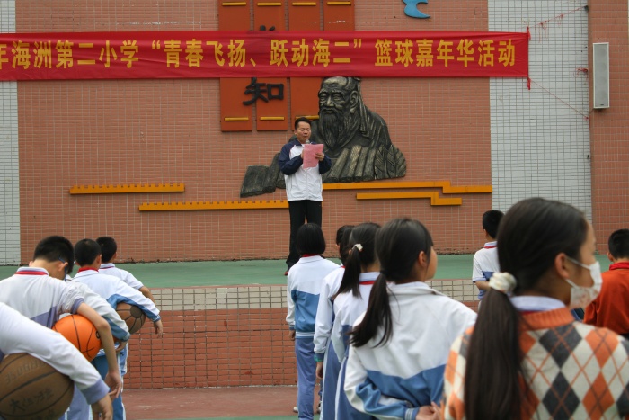 首先,主持人宣读本次活动的宗旨与精神,以秉承“文明、友谊、拼搏、向上”为宗旨,发扬“拼搏、进取、友爱、互助”的精神。接着郑弢副校长宣读比赛规则和注意事项,提醒星空体育做到安全第一,比赛第二。最后校长陈富权致开幕词,希望运动员们积极参与、服从裁判、赛出水平、赛出风采,并宣布2021年海洲第二小学篮球嘉年华活动开式。