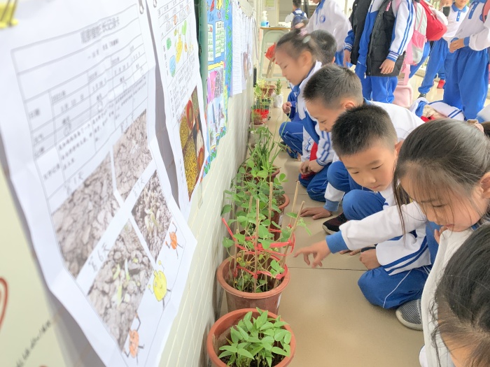 打印 |阳春三月,万物复苏,3月23日下午,镇南小学开展了植物种植评选活动。本次活动参赛对象是一、二年级的学生,在学校廖秋菊副校长的带领下,评委老师们观看各班种植的植物,了解活动开展情况,并进行点评打分,评选出了获奖的班级和个人。