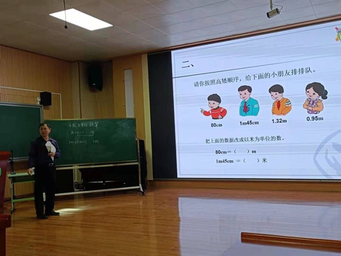本次比赛共分为两个环节。本次比赛参赛教师提前1小时领取课题,在无网络条件下,进行教学设计与课件制作,然后是10分钟的说课和5分钟的答辩。虽然只有短短一小时的备课时间,但参赛老师各个胸有成竹、沉着应战,相继登上讲台进行说课。教师们镇定从容、思路清晰,从教材分析、学生学情分析、教法学法以及教学理念、教学过程等方面入手,全面地阐述说课内容。选手的说课设计结构合理,重点突出,理论依据充分,表现了较好的驾驭教材、教学设计的能力和良好的语言表达能力。比赛结束后,邱校长对本次说课进行了点评和总结,邱校长肯定了每一位教师的努力,同时希望全体数学数学老师不断提升自己的教学基本功。
