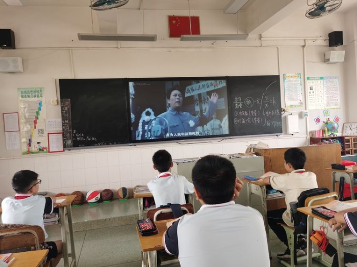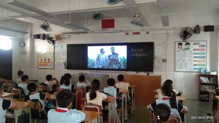 海洲第一小学积极利用一切公共宣传资源,积极向教师、家长、学生推荐党史党建影视作品,并在班级内适时播放彰显中国共产党光辉岁月历程的一系列爱国影片,积极引导全校师生进行党史学习,激发浓浓的爱国情怀!
