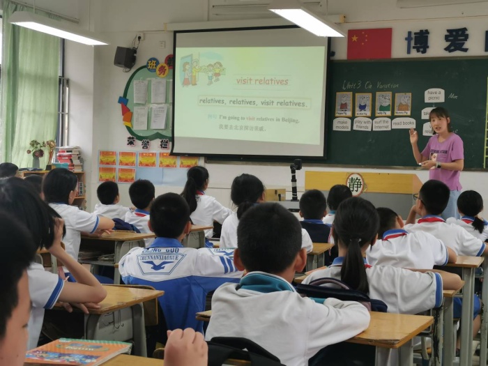 首先进行的是第一项议程,老师们分级组进行听课和评课,老师们课后及时反馈反思评价课堂教学不足,提出改进方法,起到一人上课,团队共同参与反思比较,促进个人课堂教学优化发展,最终达成团队协作共同提高教育教学质量的目的。陈泽旋老师上的是四年级unit3bank or beach的词汇课。陈老师精心设计,运用视频将单词融合,整体呈现单词,趣味性较强。陈老师在单词朗读方面,运用了多种形式朗读,如逐个朗读、小组读、男女生读等,检测面较广,常规呈现的不错。张雪老师教学的内容是五年级unit3 On Vacation的词汇课。张老师以语篇为载体,引入词汇教学,视频内容紧扣课本词汇,学生积极性高,参与面广。张老师的课堂组织能力强,学生操练形式多样,结合小组训练,落实学生的读说能力。