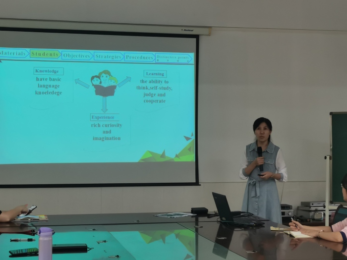 接着,科组老师共同观摩了李灵燕老师和陈慧晶老师的说课和讲故事的展示。本次说课绘本主题是Fat Cat’s Busy Day,李老师的说课环节紧凑、语言流畅、重难点突出,讲故事环节语言生动、表演性强,美中不足的是略有超时;陈老师的说课详略得体、板书的设计较好、时间掌控较为合理,讲故事环节表情丰富、趣味性强,但说课过程的流畅度需要加强。