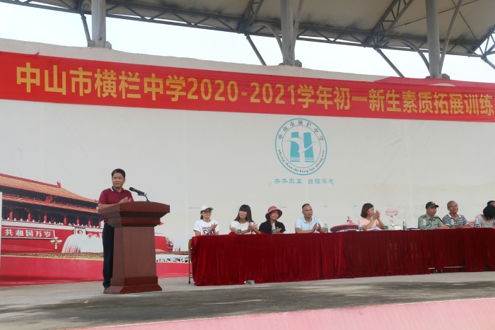 8月27日下午,横栏中学2020级新生素质拓展汇报表演暨总结表彰大会在运动场举行。结营仪式由横栏中学德育主任罗锡坤主持,横栏中学党总支书记、校长黎碧东,横栏中学德育副校长刘凌云,新黄埔少年军校郑康权主任等领导出席了此次活动。