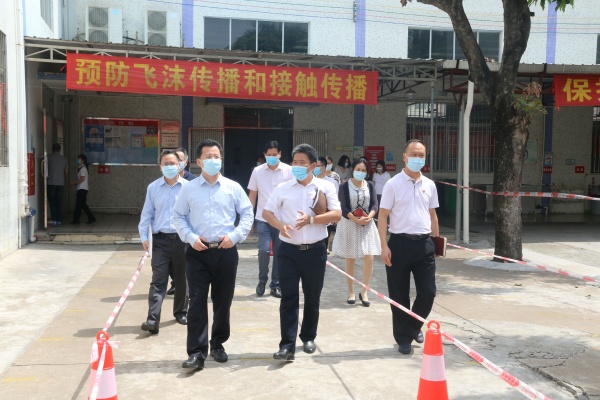 4月29日上午,中山市委常委、宣传部部长林锐熙在市教育和体育局人事科科长雷泽洪的陪同下莅临横栏中学检查指导学生返校复学工作。