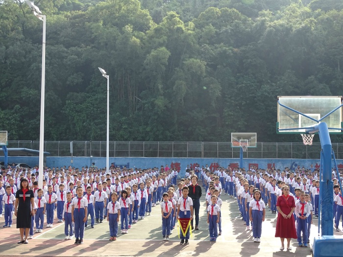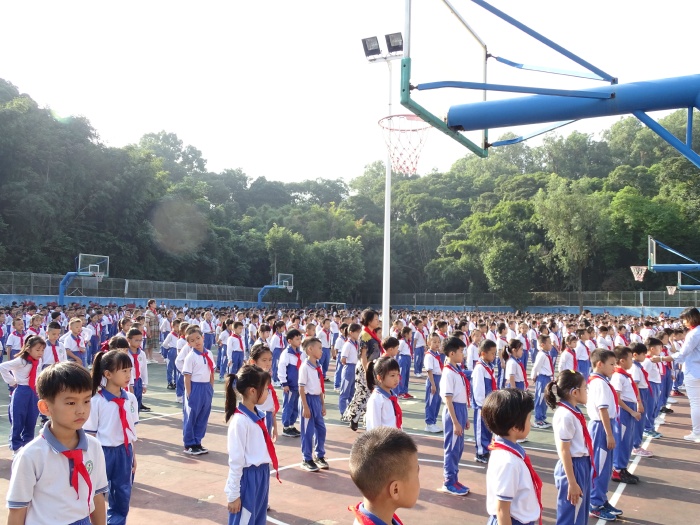 活动正式开始前,在副大队长黄心妍同学的指挥下,全体少先队员以饱满的激情合唱《中国少年先锋队队歌》。