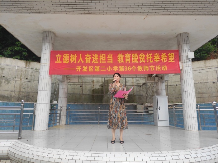 9月10日是第36个教师节。为持续实施“奋进之笔”的进展成效,展示广大教师立足教育教学岗位,助力打赢新冠肺炎疫情防控阻击战、教育脱贫攻坚战的精神风貌。当天早上,开发区第二小学全体师生齐聚学校操场举行以“立德树人奋进担当 教育脱贫托举希望”为主题的庆祝教师节活动。