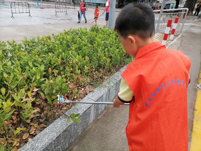 活动得到三小亲子义工队家长们的大力支持,活动召集一发出,10分钟报满了名。活动中,志愿者们个个干劲十足,不怕脏,不怕累:你拿袋子,我捡垃圾,配合得相当默契;有的用大扫把,将校园里满地的树叶扫在一起;有的拿着钳子,穿梭在路边花坛中,将那深藏其中的脏物一个不漏地“揪”了出来;有的干脆直接用手捡拾起垃圾……