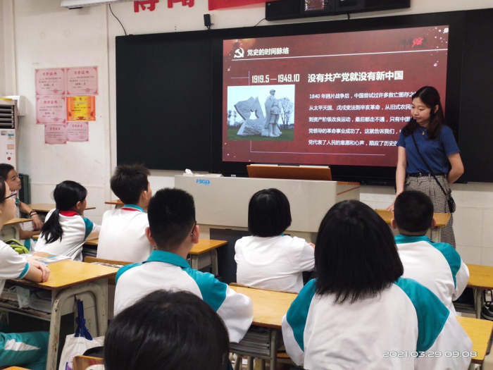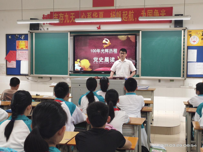 在早早读中,班主任积极参与互动,通过讲解一代代共产党人艰苦卓绝的奋斗历程,激励中学生学党史,知党情,将个人奋斗目标与社会、国家奋斗目标联系起来,做新时代厚德少年,以新面貌展现新作为。在各班营造了学史明理、学史增信、学史崇德、学史力行的浓厚氛围。