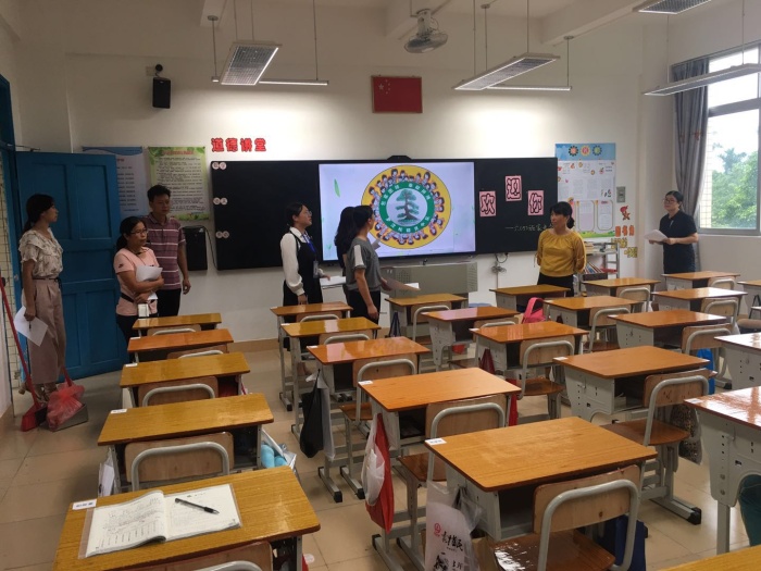 9月28日下午4:30,五、六年级班主任在级组长梁景辉老师以及驻级行政的带领下,首先来到六(4)班进行评比。六(4)班以“棕竹班”为建设背景,用棕竹为载体,开展读画讲写行五维一体的的特色班级——棕竹班。而六(3)班则以罗汉松为依托,以学生空间发展为目的而开展了以顽强拼搏为亮点的特色班级活动。