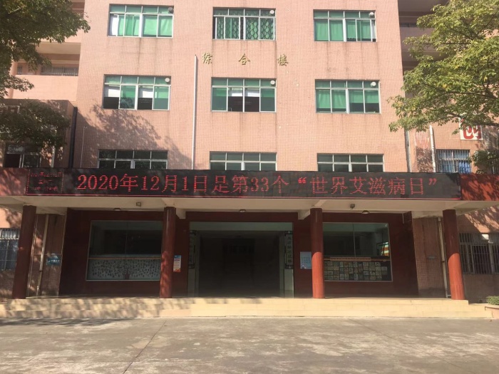 首先,民众中学开展了有关预防艾滋病的国旗下讲话,要求全体师生高度重视这项工作。并在学校电子屏幕上打上:“携手防疫防艾,共担健康责任”文字。