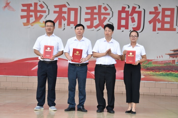“起来!不愿做奴隶的人们——”全校近3000名师生齐唱国歌,五星红旗冉冉升起,庆祝教师节暨表彰大会在庄严的升旗仪式中拉开了序幕。学生代表雷荟美同学激情演讲,表示在新的学年将会勤奋刻苦,努力拼搏,不辜负家长、老师们的殷切期望,并深情表达了对老师的感恩,对同学的激励以及对全体老师的节日祝福。办公室吴良成主任宣读表彰决定,对在2019学年度教育教学中成绩优异的优秀少先队辅导员、优秀班主任、优秀教师、优秀教育工作者共35位老师进行了表彰,学校黄元感校长及主要行政领导为获奖教师进行了颁奖,感谢他们在过去一个学年的倾情付出,成就学校荣光。