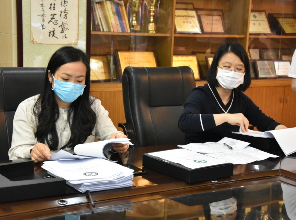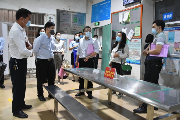 市复学验收组进入校园后,对锦标学校校门口、课室、食堂、宿舍、卫生保健室、健康观察室、物质储备室等重点防控场所进行了实地核验。检查组实地核验完后,对照《中山市中小学校幼儿园学生返校准备工作验收表(第一版)》上的六项工作指标57项工作任务,认真逐条查看档案材料,并详细了解了学校开学后的体温检测、教室上课、师生就餐、宿舍就寝、发热隔离、防控物资等各环节的准备工作情况。